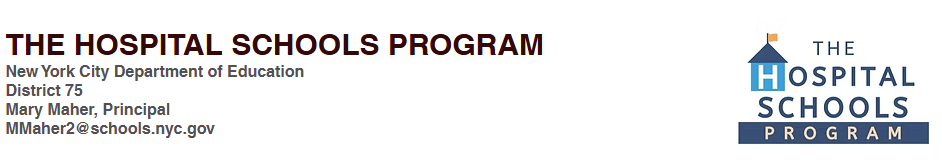 The Hospital Schools staff are a part of the New York City Department of Education District 75. Our certified Hospital Schools' teachers will make sure that your child receives instruction in alignment with the coursework from their affiliated school. We will support your child's transition back to their school or home instruction.